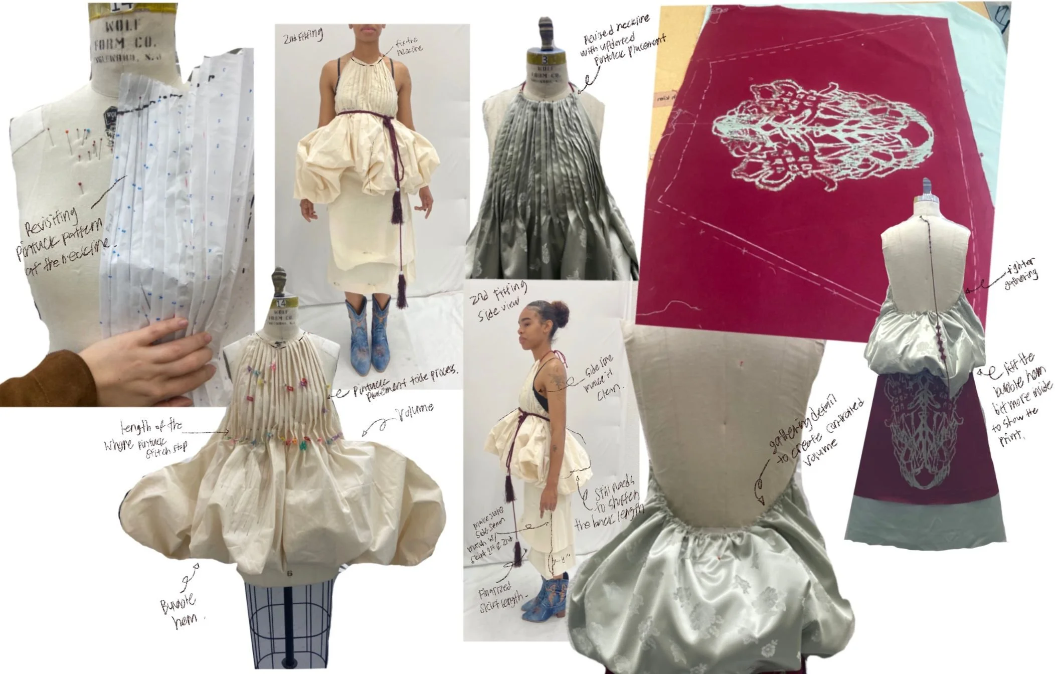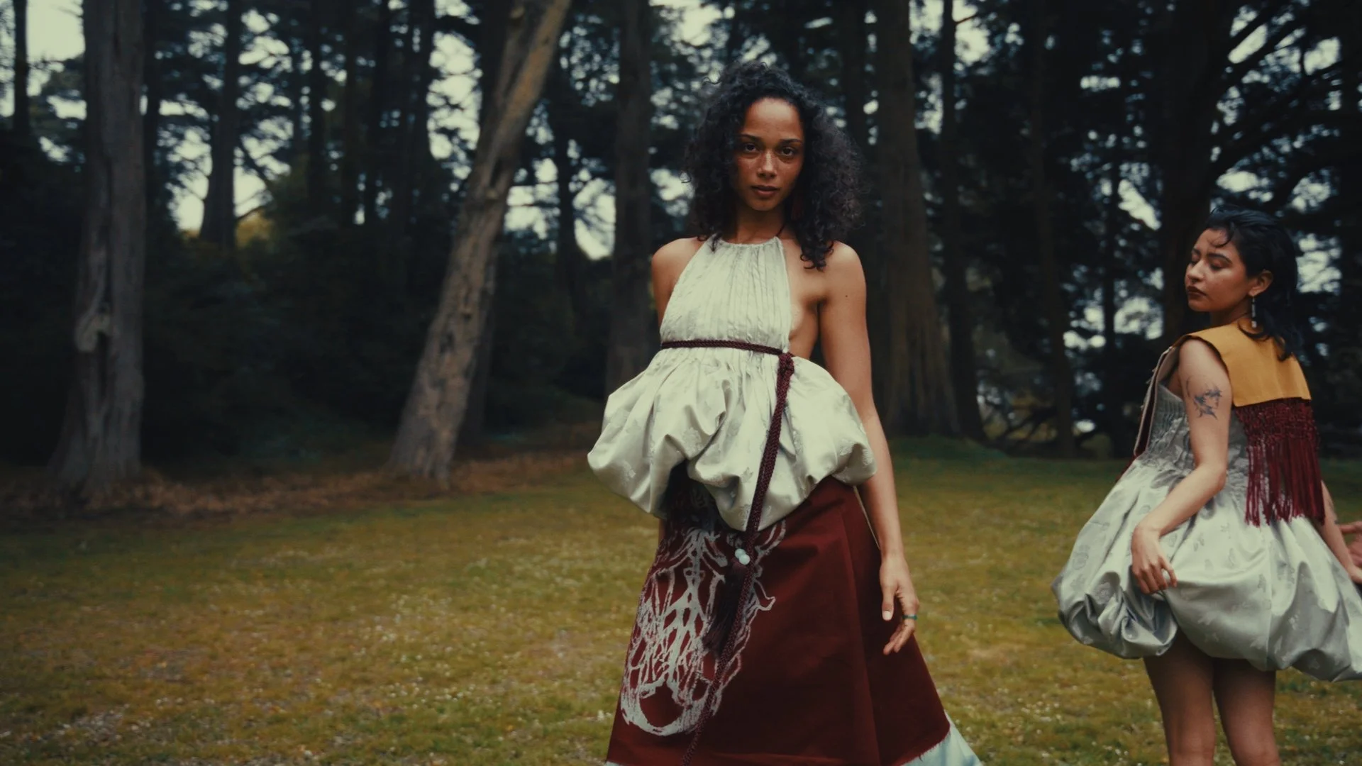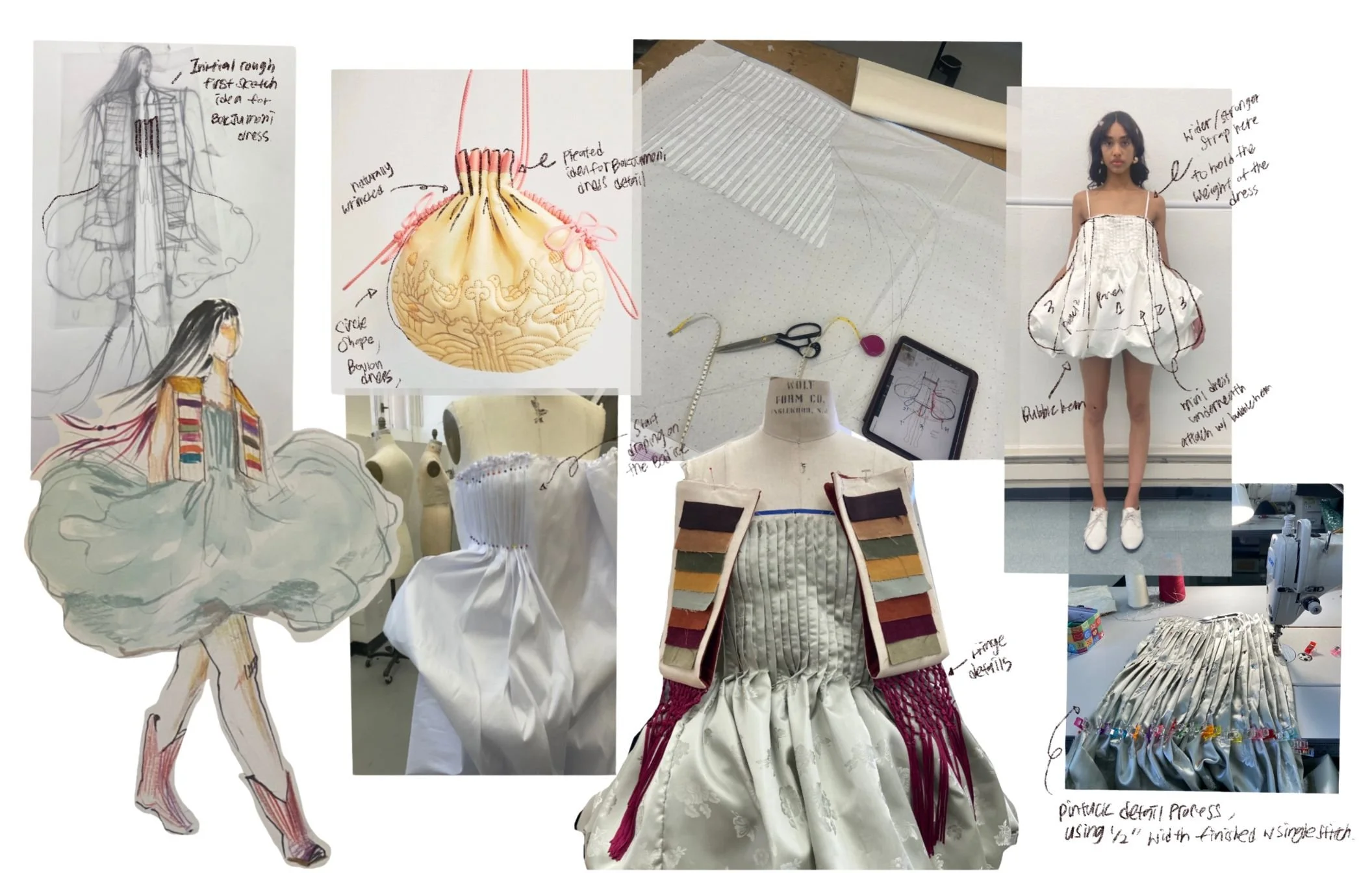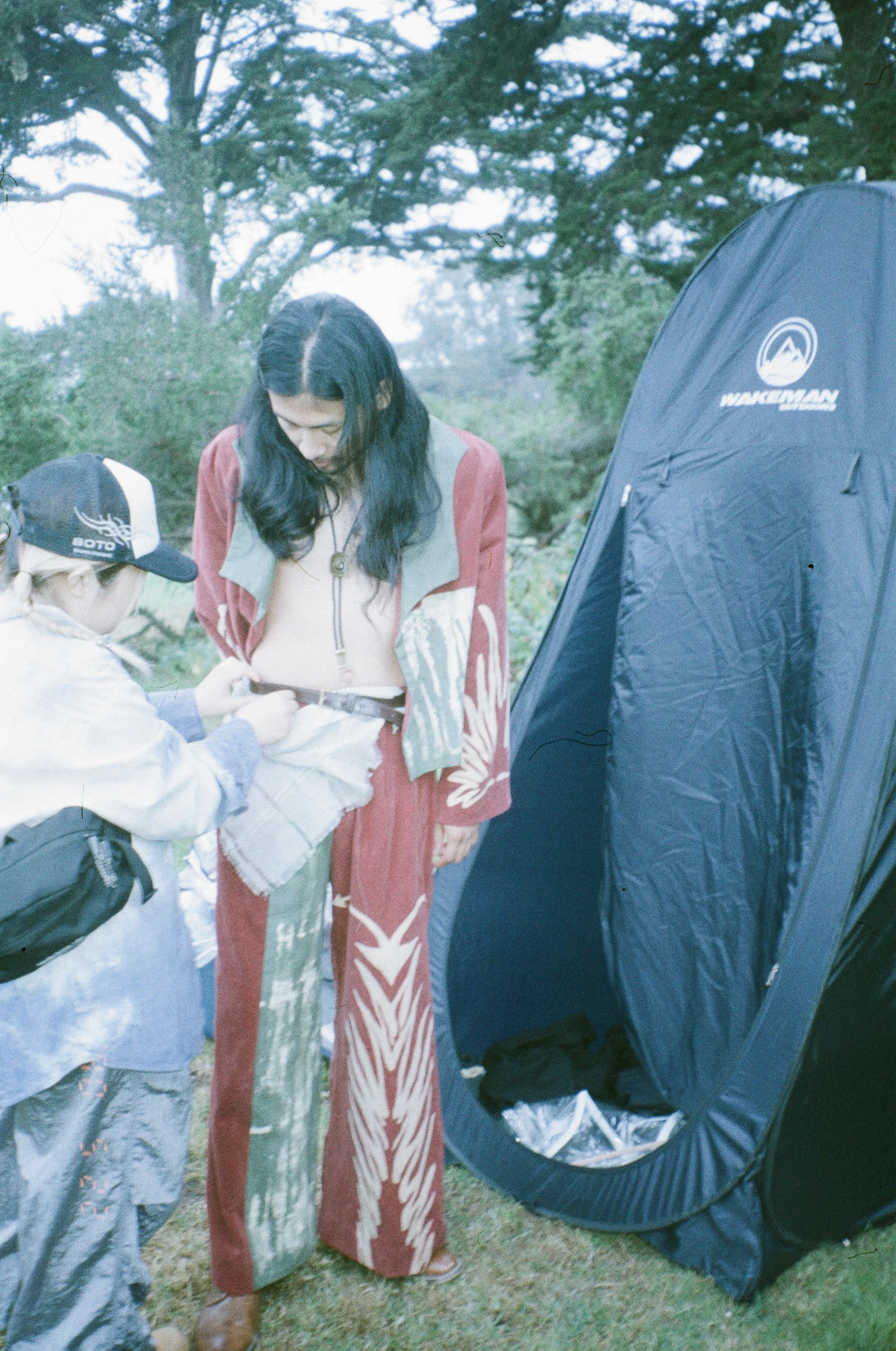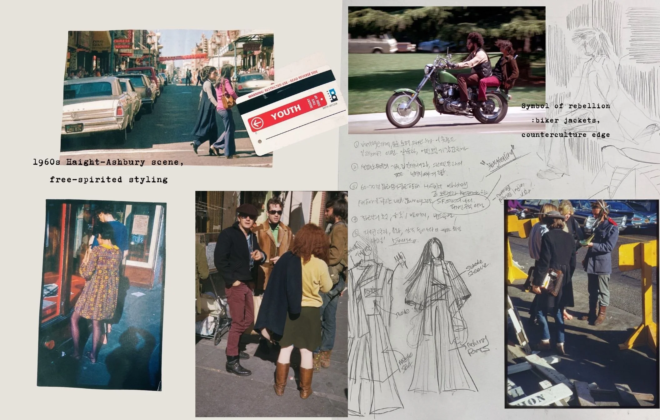 At the heart of this collection is a fusion of my Korean heritage with the vibrant countercultural movement of that era. I’ve incorporated traditional elements such as the bokjumeoni (Korean coin pouch), once carried by young people during the Joseon Dynasty. These pouches, with their unique shapes and vivid colors, are reimagined through bold silhouettes, experimental fabrics, and intricate knot details—motifs that also inspired my print designs. An expressive color palette ties everything together, filtered through my own lens on 1960s–’70s San Francisco.