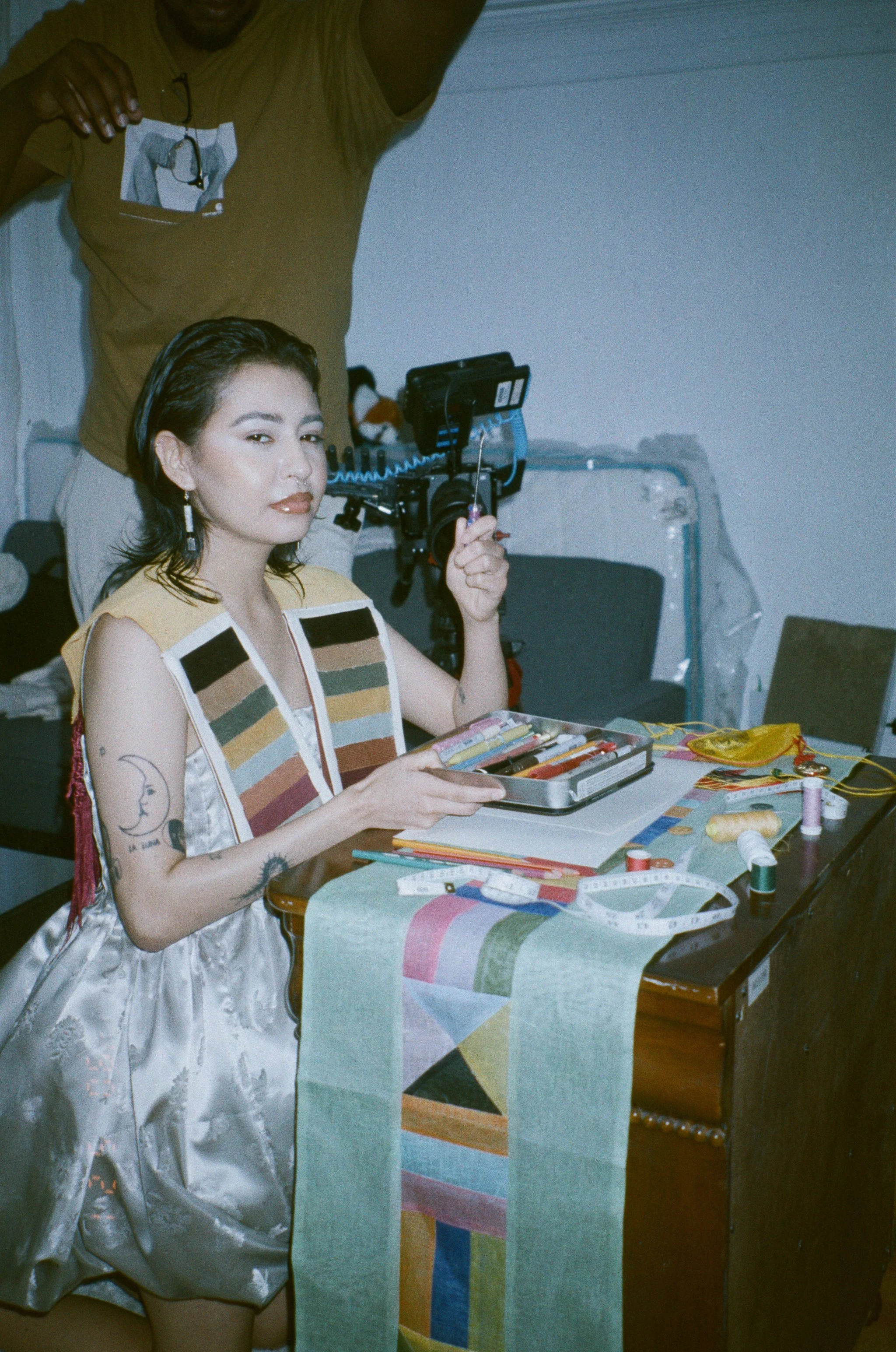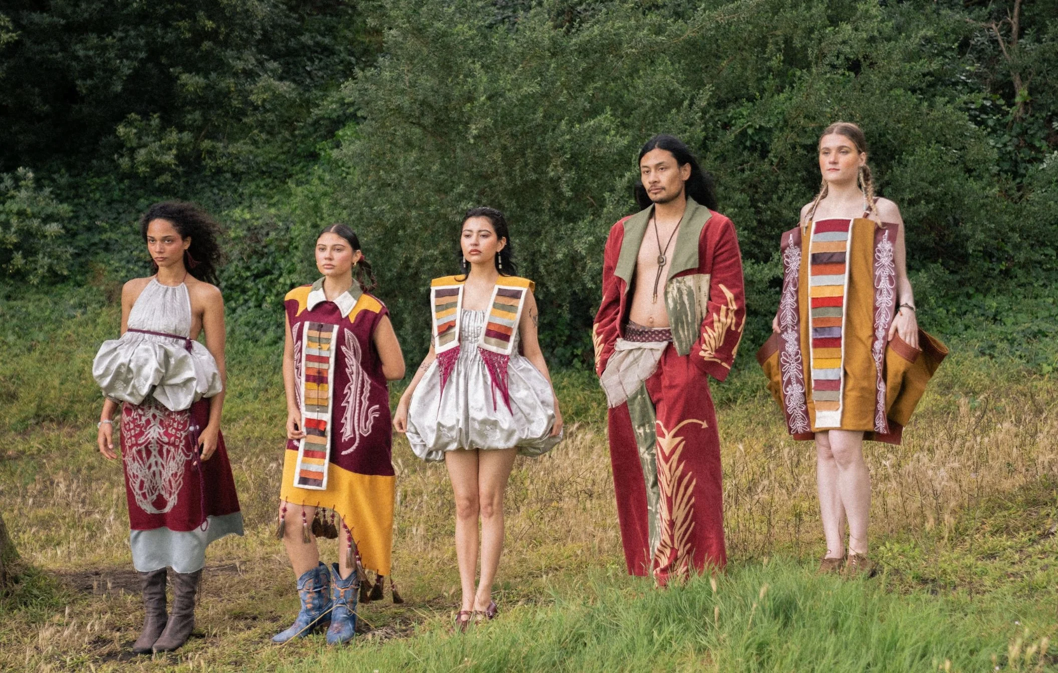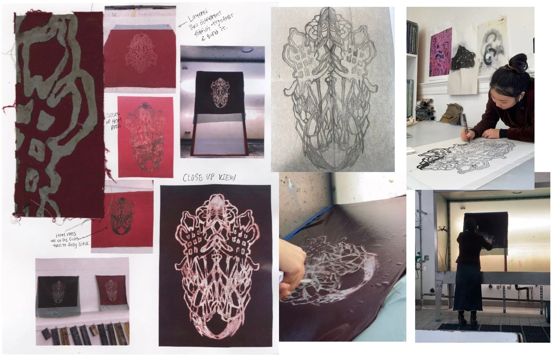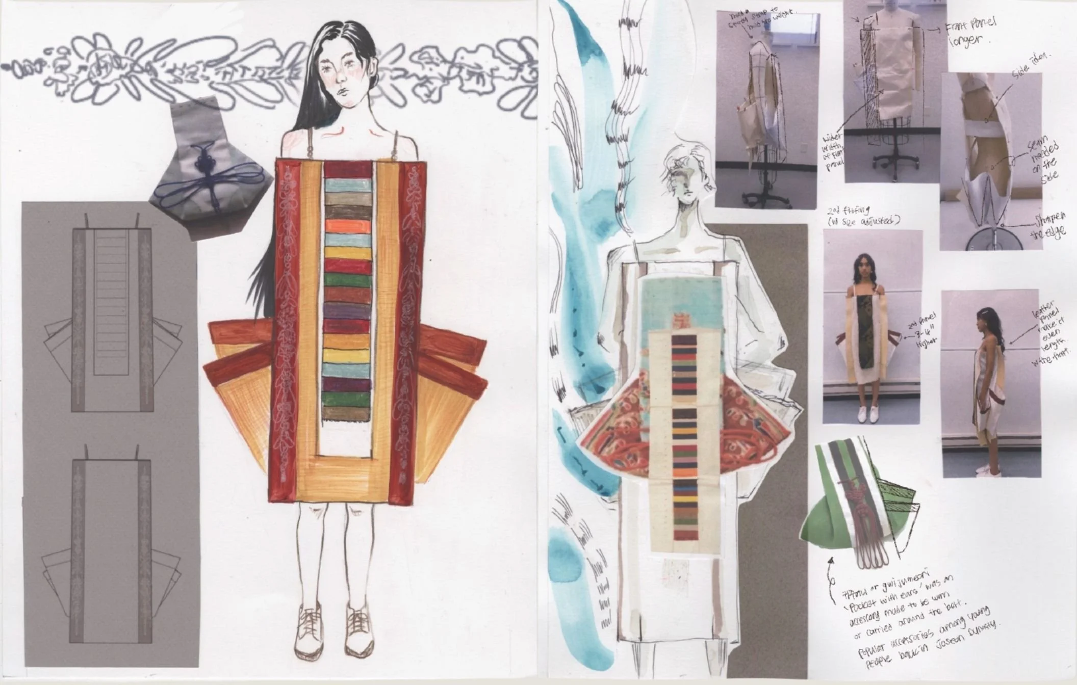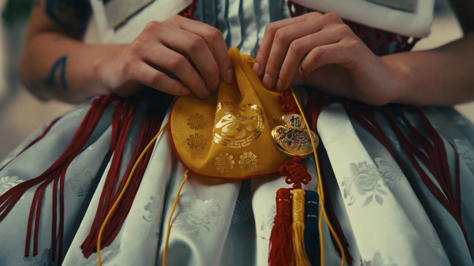 At the heart of this collection is a fusion of my Korean heritage with the vibrant countercultural movement of that era. I’ve incorporated traditional elements such as the bokjumeoni (Korean coin pouch), once carried by young people during the Joseon Dynasty. These pouches, with their unique shapes and vivid colors, are reimagined through bold silhouettes, experimental fabrics, and intricate knot details—motifs that also inspired my print designs. An expressive color palette ties everything together, filtered through my own lens on 1960s–’70s San Francisco.