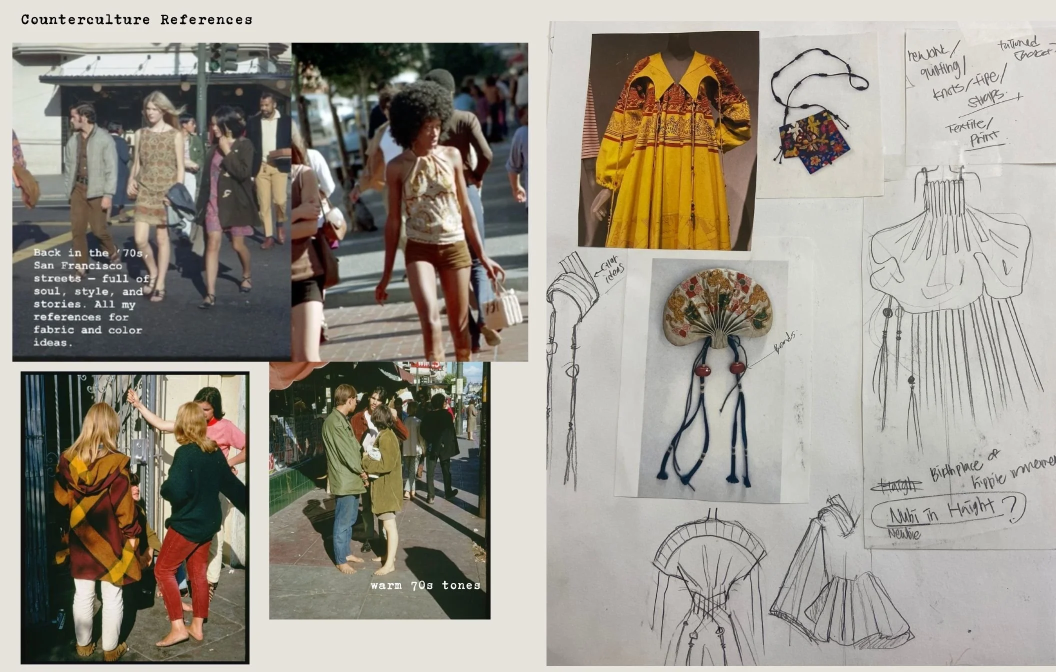 California Dreamin’ is a collection inspired by my personal journey studying fashion design in San Francisco. It captures the free-spirited energy of 1960s and ’70s San Francisco—a time when thousands of young dreamers flocked to California in search of inspiration, freedom, and new possibilities.