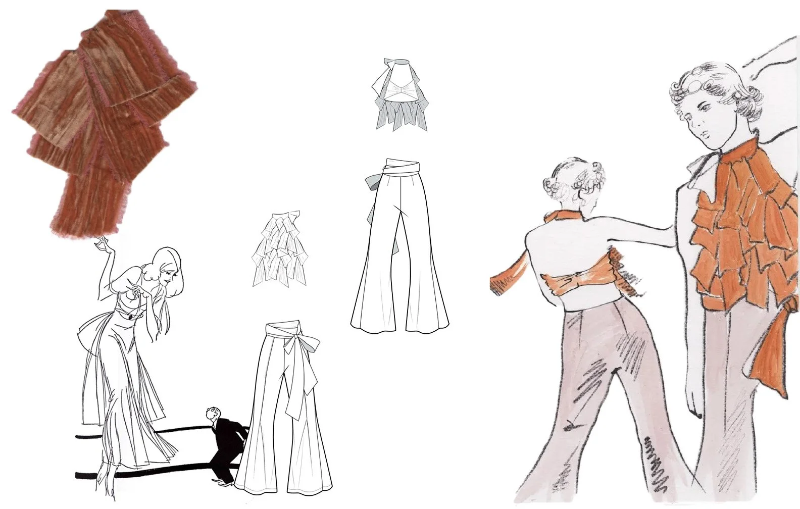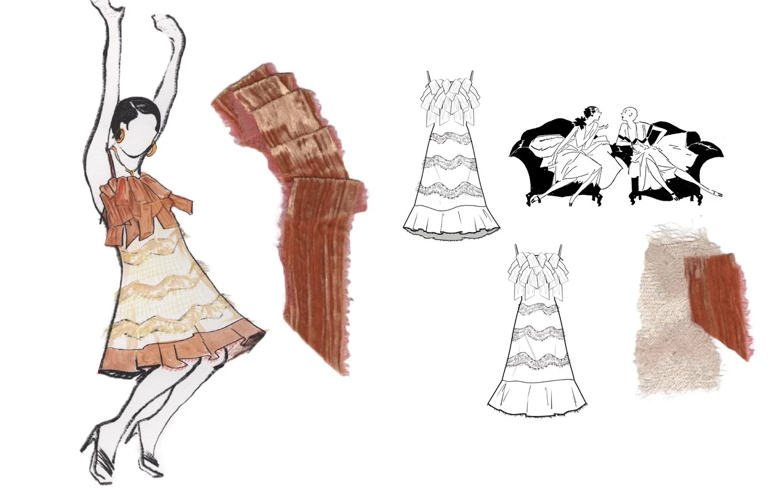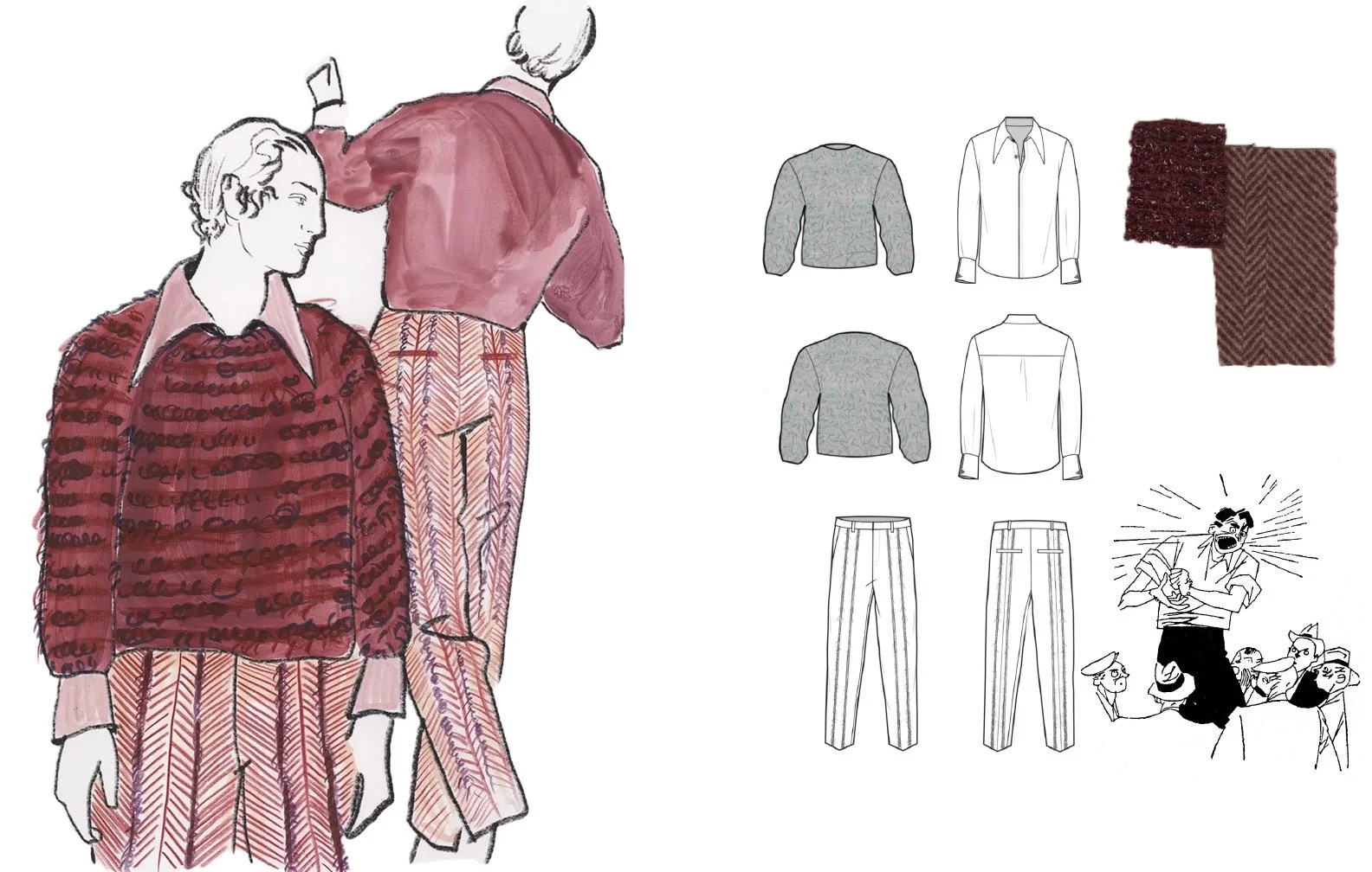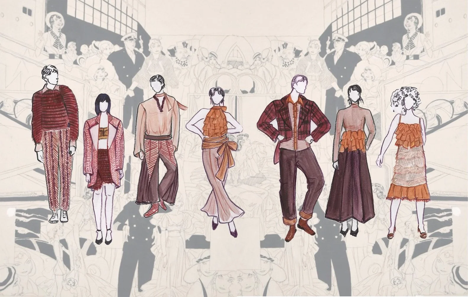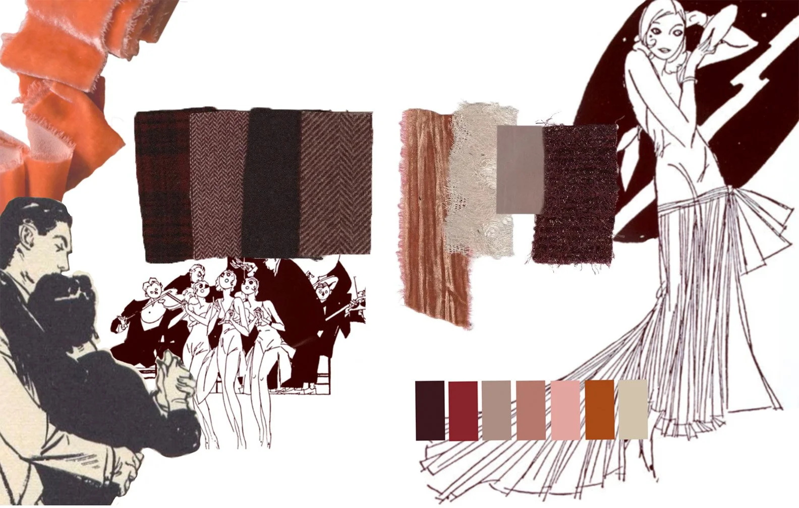Inspired by the bold rhythm of the 1920s Jazz Age and the vivid lines of Russell Patterson’s iconic illustrations, this holiday capsule collection celebrates movement, energy, and elegance. Clean silhouettes meet the expressive brushwork and sharp line styles of Patterson’s art, echoing the pulse of a bygone era reimagined for today. Tailored pieces, fluid fabrics, and striking contrasts shape a look that’s both timeless and modern. Holiday dressing with an edge—for those who stand out and stay true.